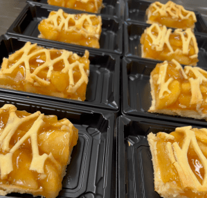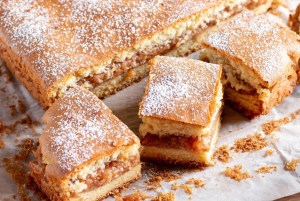 I always wanted the middle squares because it was softer and had more apple. It was my favorite, I loved it more than anything else. Granted, we didn’t have many sweet things or pastry growing up, only occasionally. It was a big deal when that flat pan came out of the cabinet. We had one apple tree, which bore smaller little sweet apples. They were yellow and red striped with a soft yellowish flesh. Mostly we snacked on them and threw the rotten ones at the neighbour kids.